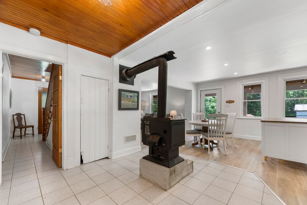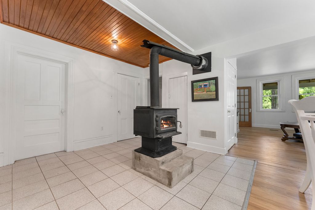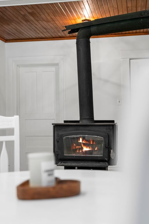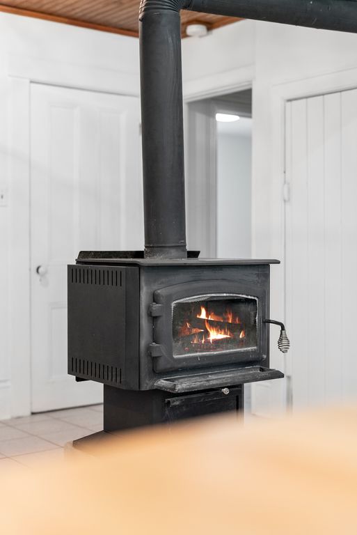 Upstairs, you’ll find four generous bedrooms and a charming 4-piece bath complete with a classic freestanding tub for soaking. The full basement includes a second wood stove, ample storage space, a walkout to the backyard, and room for hobbies or future development.
